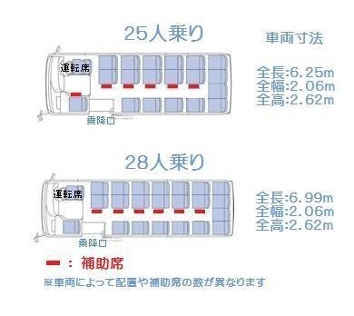 正シートの数: (25人乗) 19席 (28人乗) 21~22席